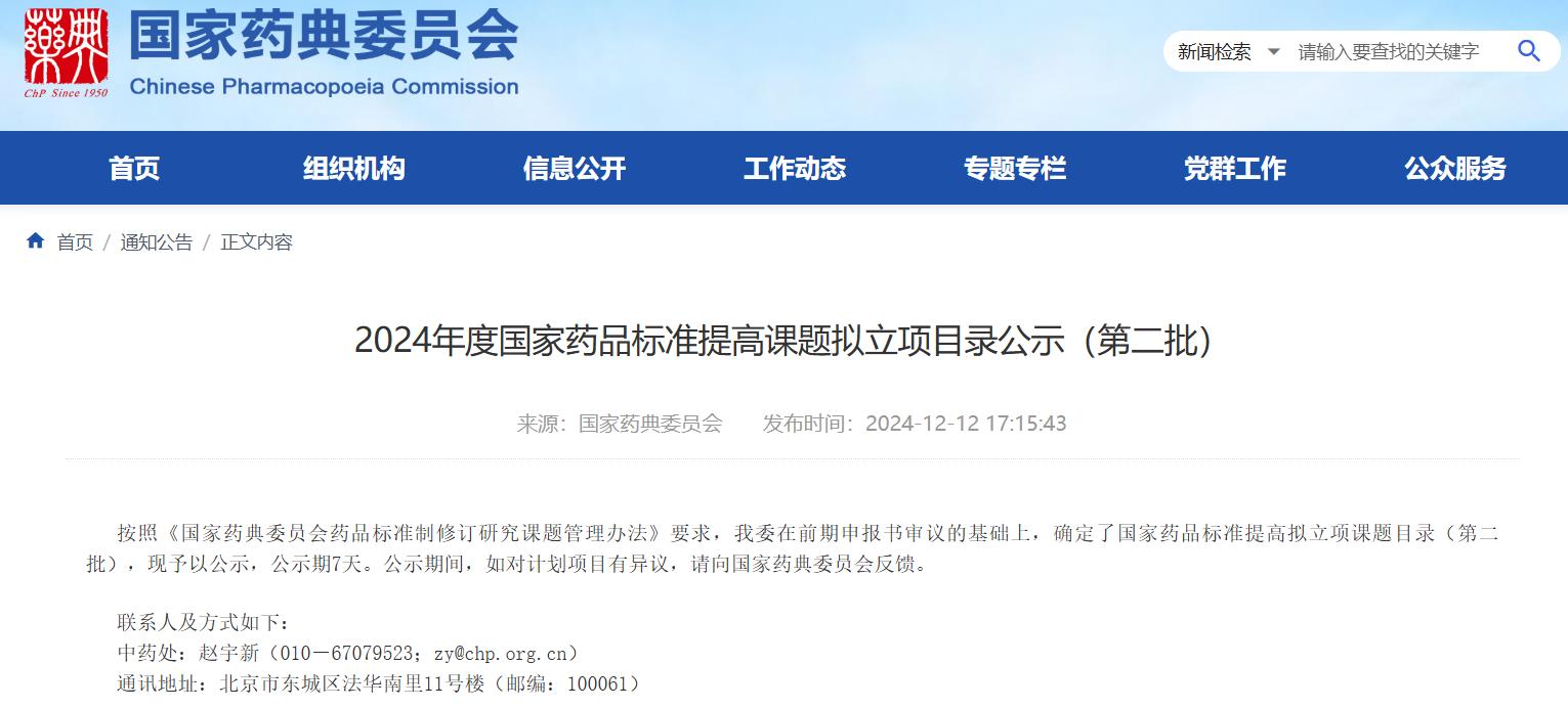 2024年度國家藥品標(biāo)準(zhǔn)提高課題擬立項(xiàng)目錄公示(第二批)
