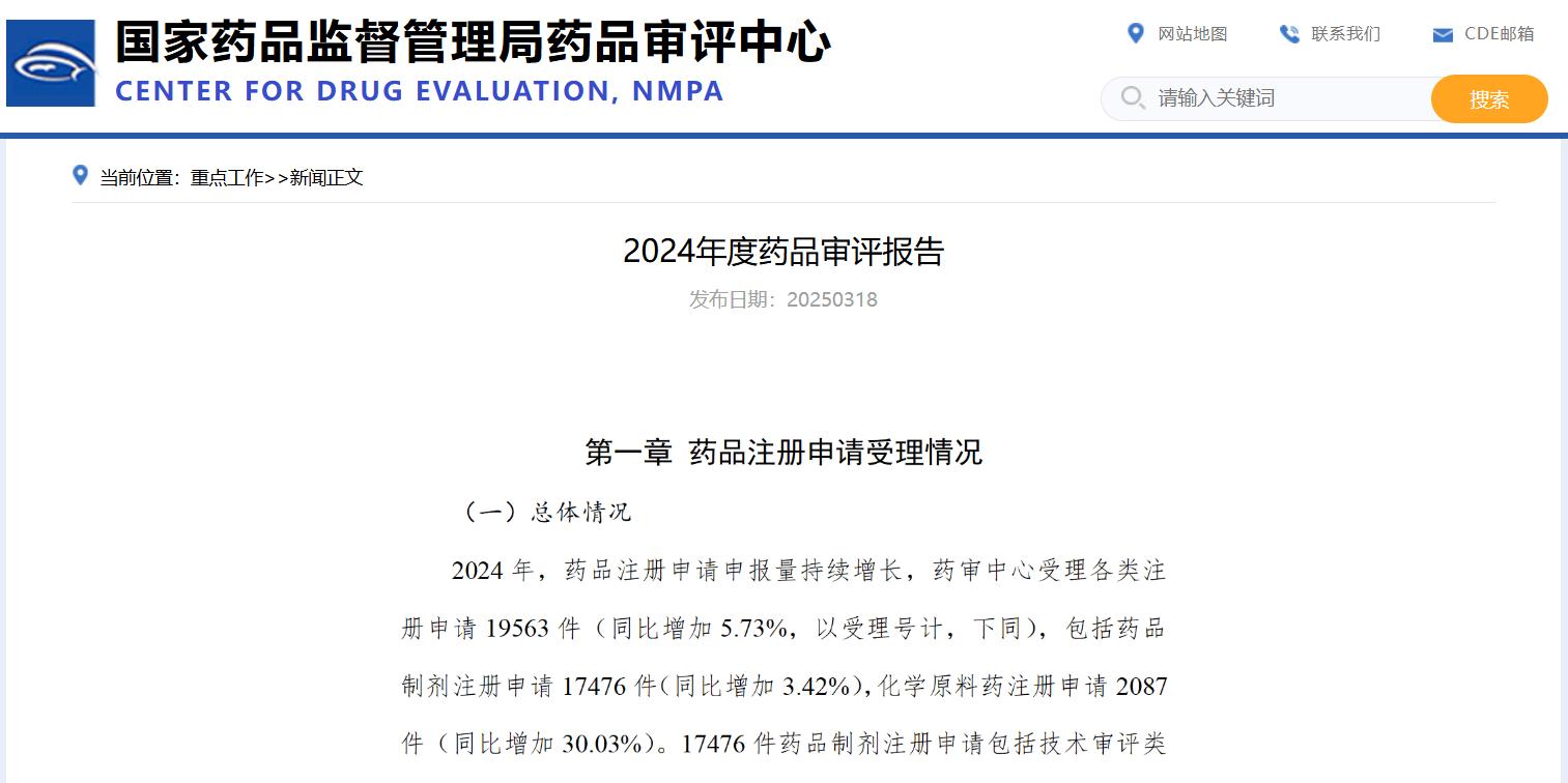 國家藥品監督管理局藥品審評中心發布2024年度藥品審評報告。