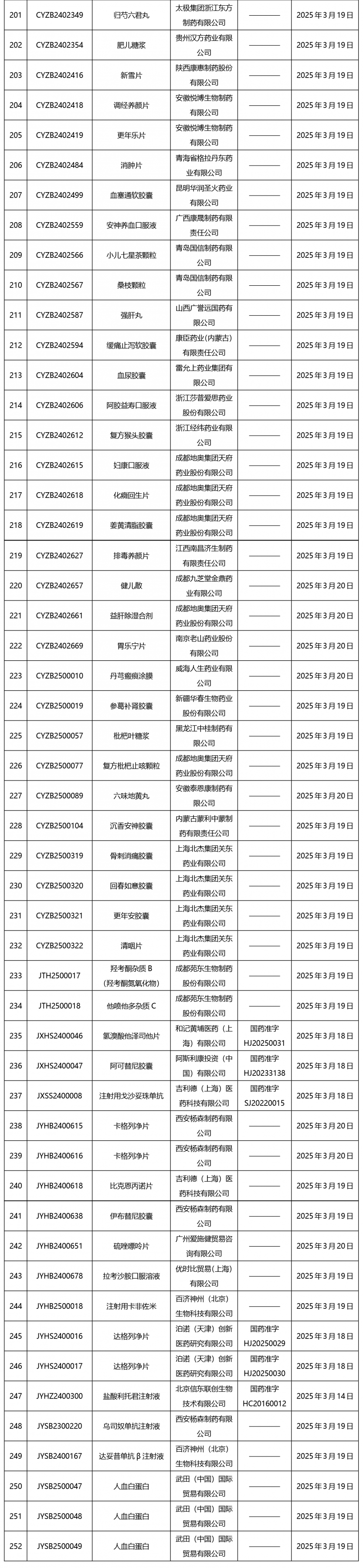 截止2025年3月21日15:00本周發布252個待領取藥品批準證明文件,其中注射液59個,一致性評價品種13個。