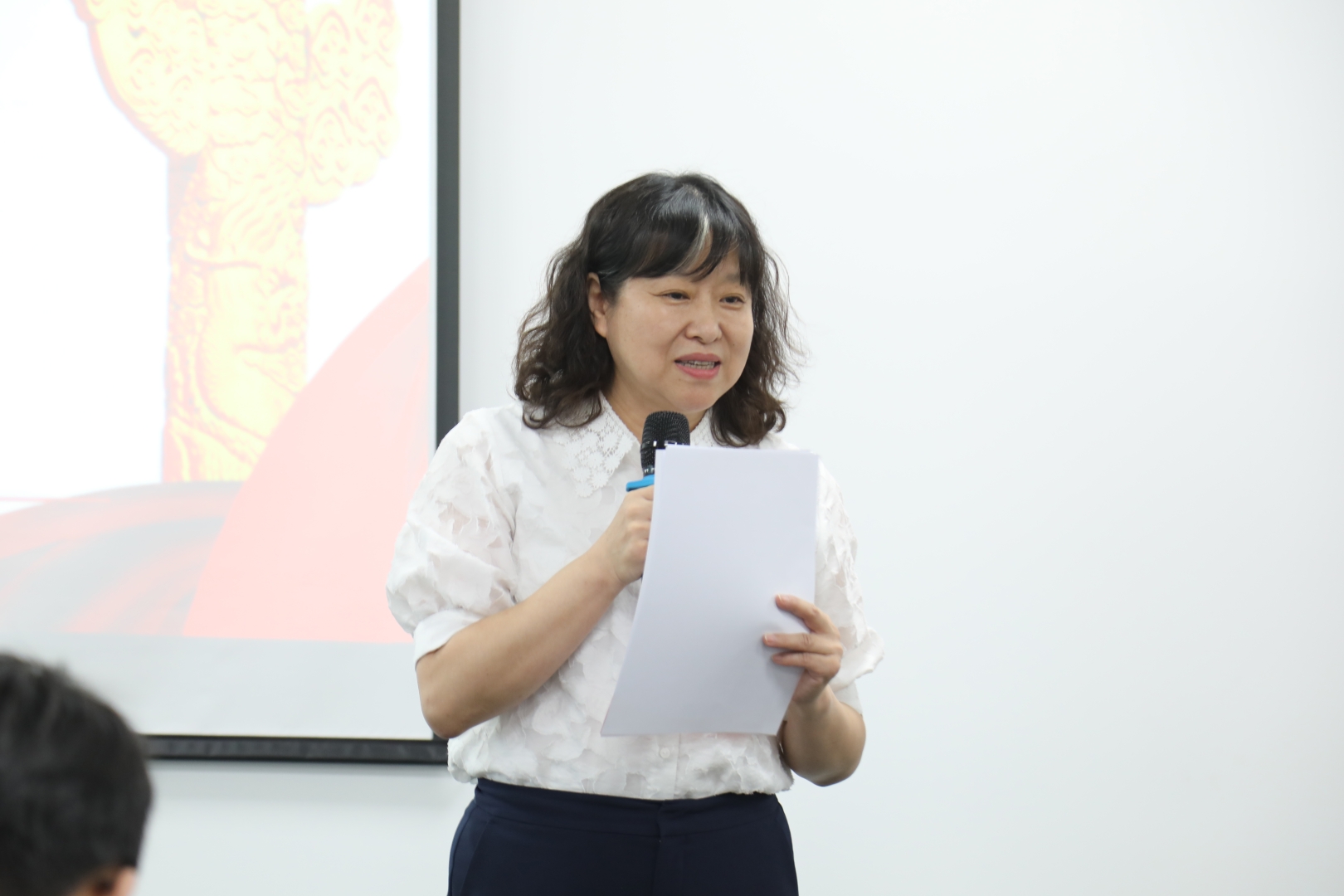 北師大樂育書院明德苑舍師生聯合黨支部書記曹美新針對《黨建引領下的師范生培養創新路徑探索》展開講解,樂育學院堅持為國育才,落實習近平總書記“回信精神”,聚焦“三全育人”抓黨建,引領了師范報國新風尚。