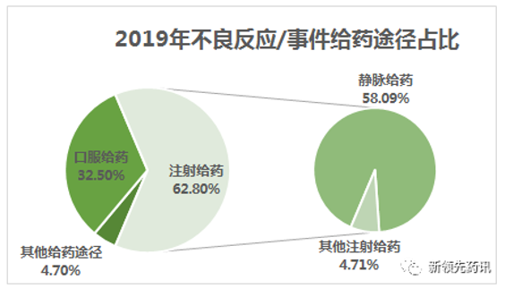 由于歷史因素,國產注射劑的安全性和有效性與原研制劑之間仍存在差異。根據《國家藥品不良反應監測年度報告(2019)》統計顯示,在2019年不良反應/事件報告中,注射劑占62.8%(其中靜脈給藥58.09%,其他注射給藥4.71%),口服給藥占32.5%,其他給藥途徑占4.7%。