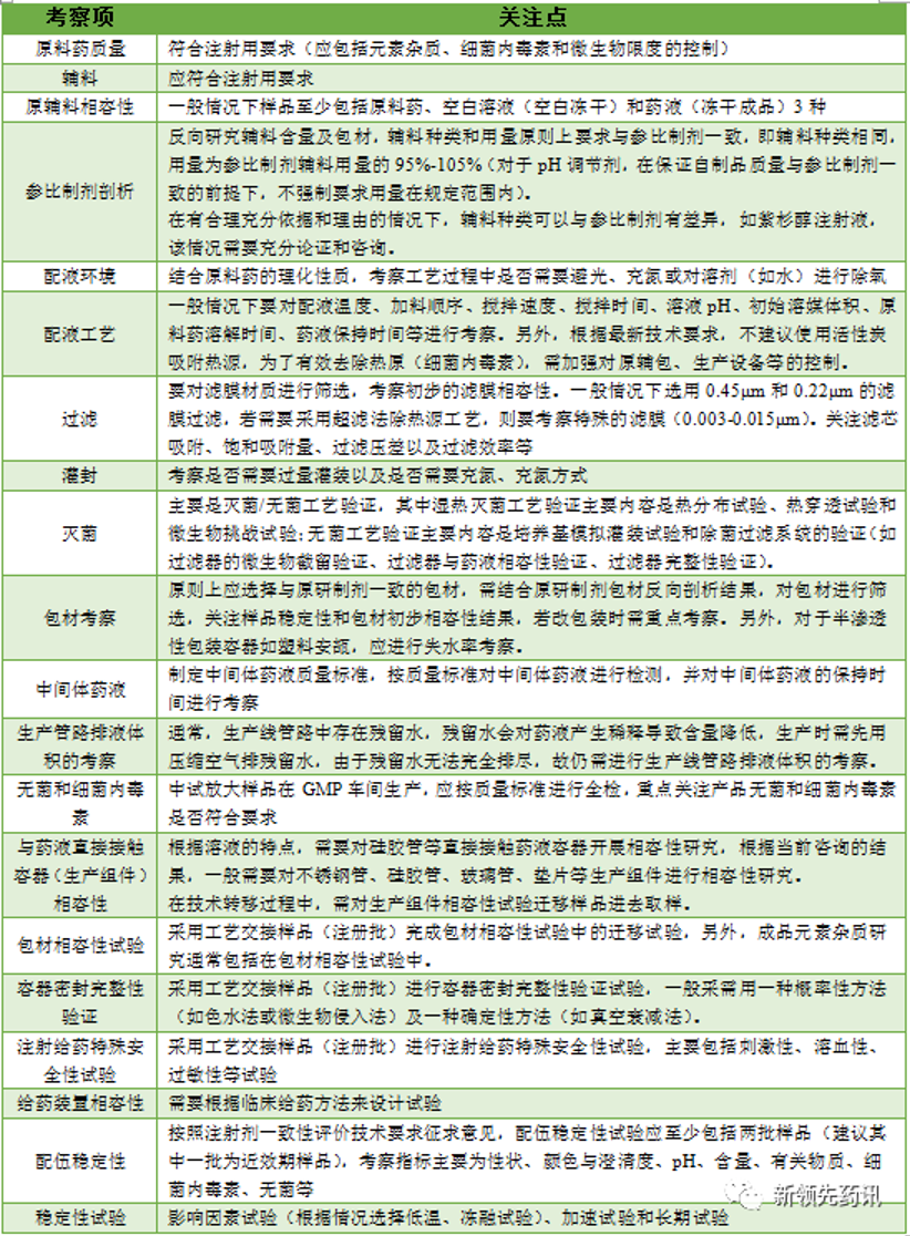對于普通注射劑的仿制,不同于口服固體制劑,無需進行體外溶出擬合,但對于質量要求更為嚴格。需以輔料組成(Q1)相同,用量(Q2)相同(仿制藥輔料用量為參比制劑相應輔料用量的95%~105%)為前提,對原輔包的質量、滅菌工藝、配伍穩定性、安全性及相容性等進行嚴格的考察。