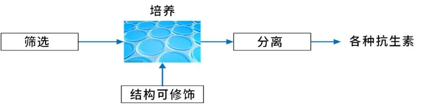 很早以前,人們發現某些微生物對另外一些微生物的生長繁殖有抑制作用,稱之為抗生(antibio)。后來發現是這些微生物含有或能夠分泌抗生的物質,稱之為抗生素(antibiotics),如青霉素。按照這個思路,通過培養與分離,陸續發現了其他抗生素,并經過結構改造后,出現了各類型的抗生素。