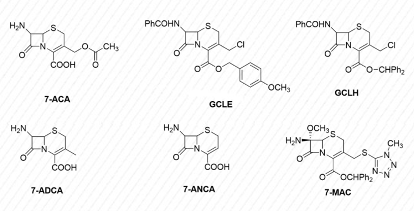 頭孢類化合物具有同樣的核心結構(母核),重要的母核中間體有