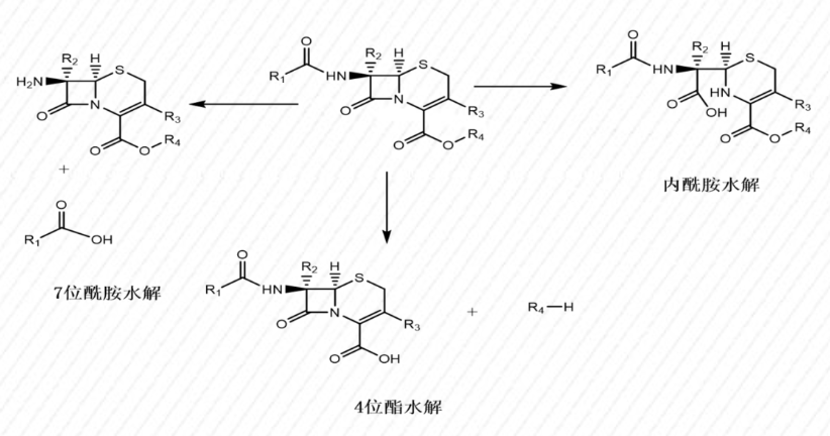 頭孢類化合物中官能團較多,且很多官能團穩定性差,因此大部分頭孢類化合物,熱穩定性、光穩定性、酸堿穩定性、溶液穩定性均相對較差,對于側鏈及尾鏈中含氮原子較多結構的頭孢化合物,容易氧化。