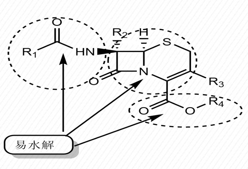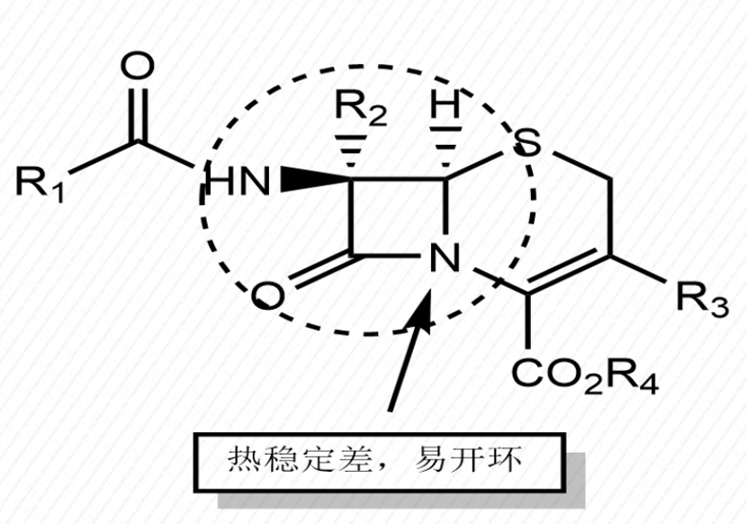 頭孢類化合物熱穩定性差、酸堿穩定性差、溶液穩定性差,部分品種光穩定性差。