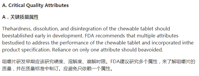 FDA發布的咀嚼片關鍵質量屬性指導原則中提出: