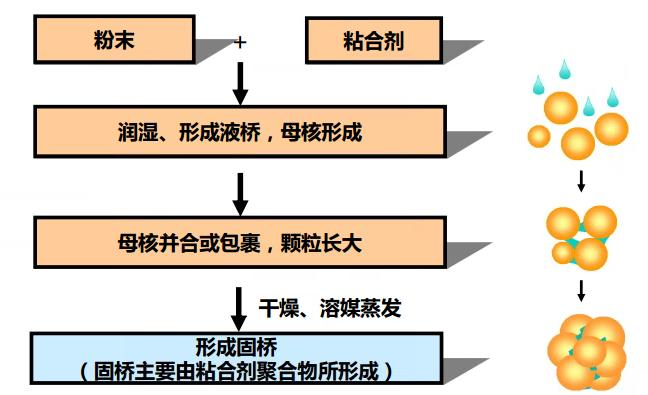 高速剪切濕法制粒可分為 預(yù)混階段、噴粘合劑階段和濕顆粒形成階段。 由于濕法制粒機(jī)中有很多工藝參數(shù)如攪拌及剪切速度、粘合劑加入時(shí)間、制粒時(shí)間、粘合劑加入量等都會(huì)對顆粒性質(zhì)產(chǎn)生影響,同時(shí)這些工藝參數(shù)之間還可能存在協(xié)同作用,共同決定最終的顆粒性質(zhì)。