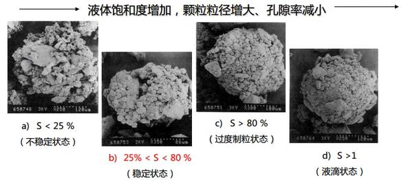 參照《固體口服制劑的研發(fā)-藥學(xué)理論與實(shí)踐》一書,及陳挺老師《流化床微丸包衣工藝和高剪切制粒工藝的關(guān)鍵因素和工藝放大》一文中對于濕法制粒的理解,濕法制粒核心需對濕顆粒的含水量和顆粒緊實(shí)程度進(jìn)行優(yōu)化,以獲得合理的濕顆粒液體飽和度,以期獲得合適并穩(wěn)定的粉體學(xué)特征的顆粒,用于壓片、包衣等, 通過參數(shù)摸索確認(rèn)濕法制粒的關(guān)鍵工藝參數(shù)及工藝設(shè)計(jì)區(qū)間為濕法制粒研究的關(guān)鍵點(diǎn)及難點(diǎn)。