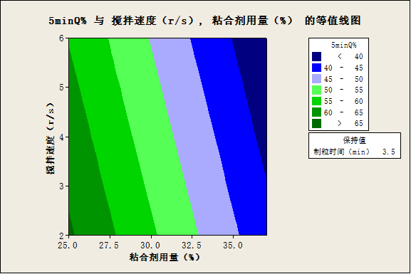 圖: 粘合劑和攪拌速度對5min溶出度的影響趨勢(制粒時(shí)間3.5min)