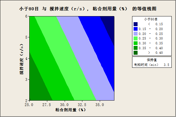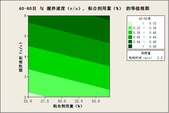 圖: 粘合劑和攪拌速度對小于80目粒度分布的影響趨勢(制粒時(shí)間3.5min)