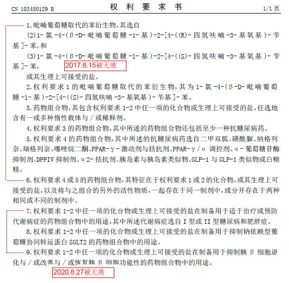 但上述專利先后均被國內企業以個人名義進行了部分無效,部分無效后的專利只保護制備方法,不再保護恩格列凈化合物和用途,如下所示:
