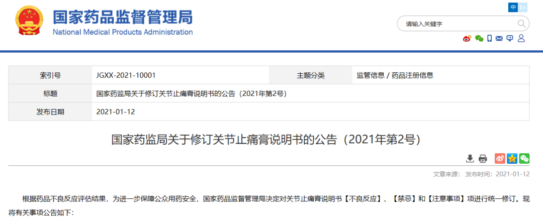 關(guān)于修訂關(guān)節(jié)止痛膏說(shuō)明書的公告(2021年第2號(hào))
