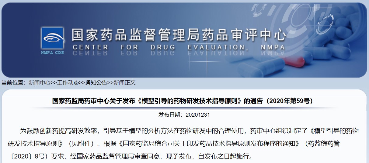 關于發布《模型引導的藥物研發技術指導原則》的通告(2020年第59號)