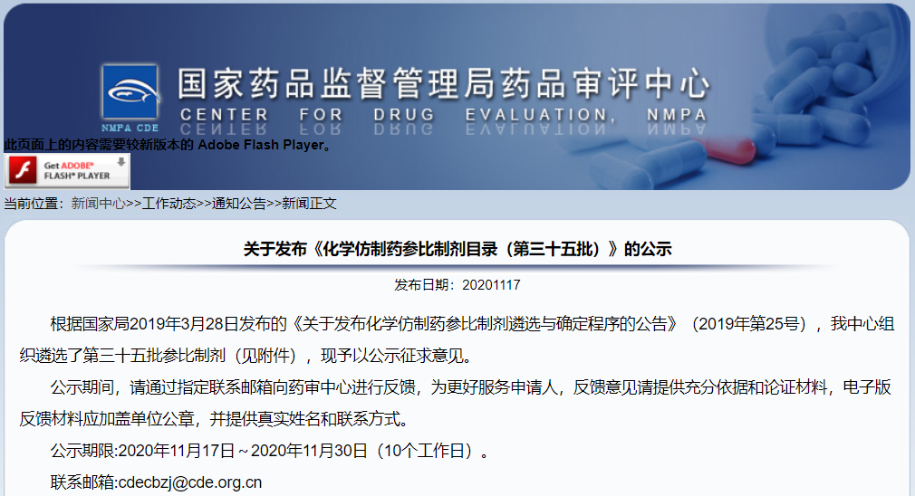 關于發布《化學仿制藥參比制劑目錄(第三十五批)》的公示(征求意見稿)