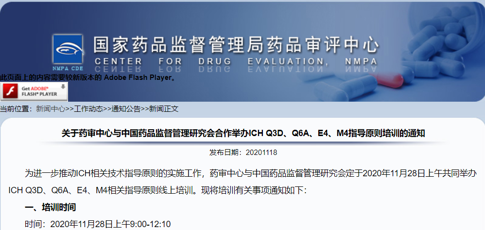 關于藥審中心與中國藥品監督管理研究會合作舉辦ICH Q3D、Q6A、E4、M4指導原則培訓的通知