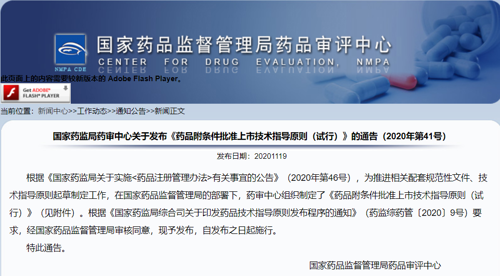 關于發布《藥品附條件批準上市技術指導原則(試行)》的通告(2020年第41號)