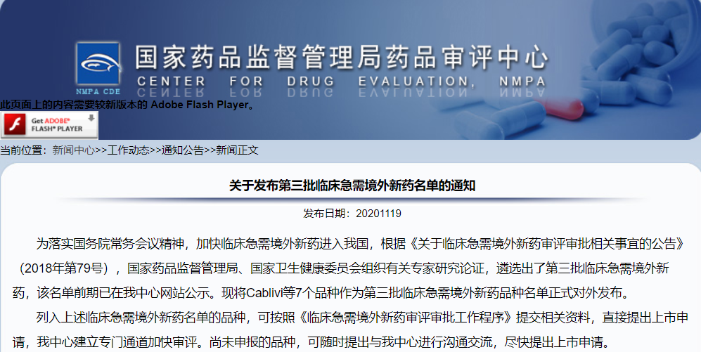 第三批臨床急需境外新藥名單發布