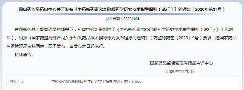 《中藥新藥研究各階段藥學(xué)研究技術(shù)指導(dǎo)原則(試行)》(2020年第37號)