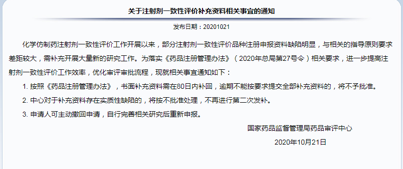 ? 關于注射劑一致性評價補充資料相關事宜的通知