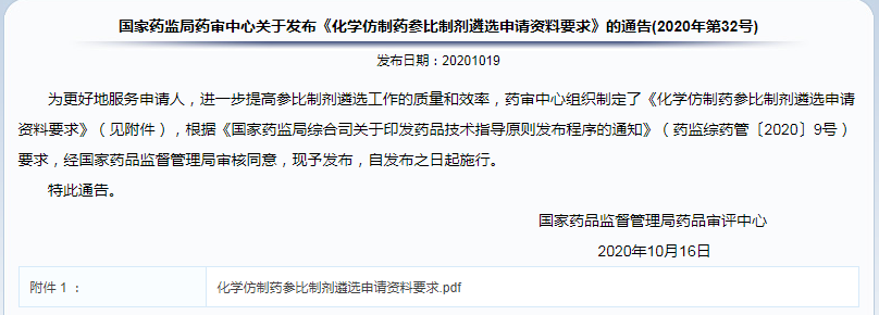 ? 國家藥監局藥審中心關于發布《化學仿制藥參比制劑遴選申請資料要求》的通告(2020年第32號)