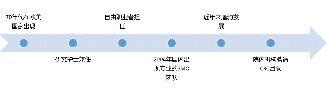 我國自2003年9月1日《藥物臨床試驗質(zhì)量管理規(guī)范》實施以來,對臨床試驗中的各個方面都提出了具體的要求,包括倫理、研究人員職責(zé)和效率等。在藥物臨床試驗日趨規(guī)范的背景下,CRC職業(yè)應(yīng)運而生,它解決了研究者因醫(yī)務(wù)工作繁忙,無法及時完成藥物臨床試驗中很多繁瑣的事務(wù)性工作問題。CRC最初由護(hù)士兼任,后來發(fā)展到自由職業(yè)者擔(dān)任,直至2004年國內(nèi)終于出現(xiàn)了專業(yè)的SMO團(tuán)隊。