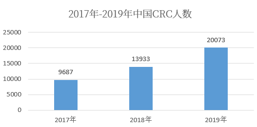 近年來,隨著國內(nèi)臨床試驗機(jī)構(gòu)數(shù)量的不斷增加,醫(yī)藥外包行業(yè)更是迎來了蓬勃發(fā)展期,CRC從業(yè)者由2017年的9687人增長到2019年的20073人,醫(yī)院機(jī)構(gòu)也開始建立自己的CRC團(tuán)隊。