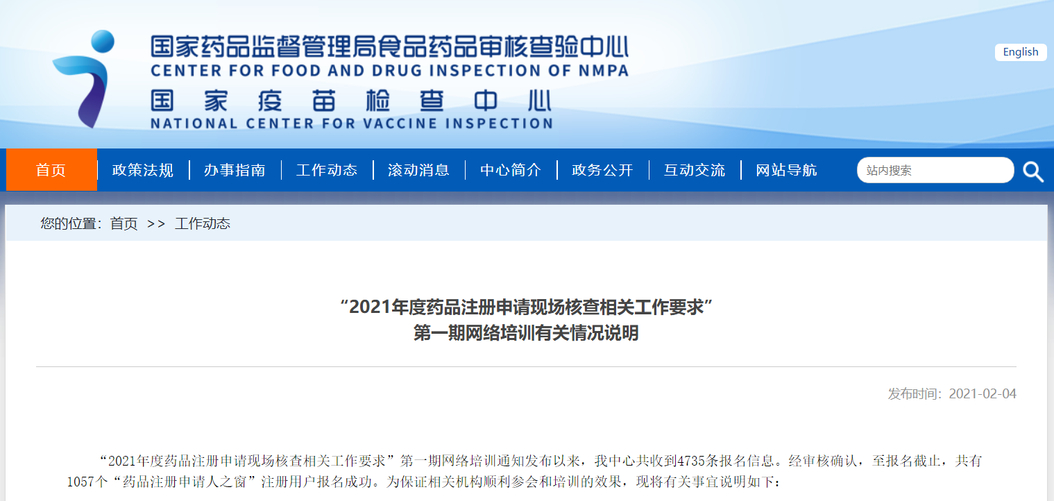 “2021年度藥品注冊申請現場核查相關工作要求”第一期網絡培訓有關情況說明