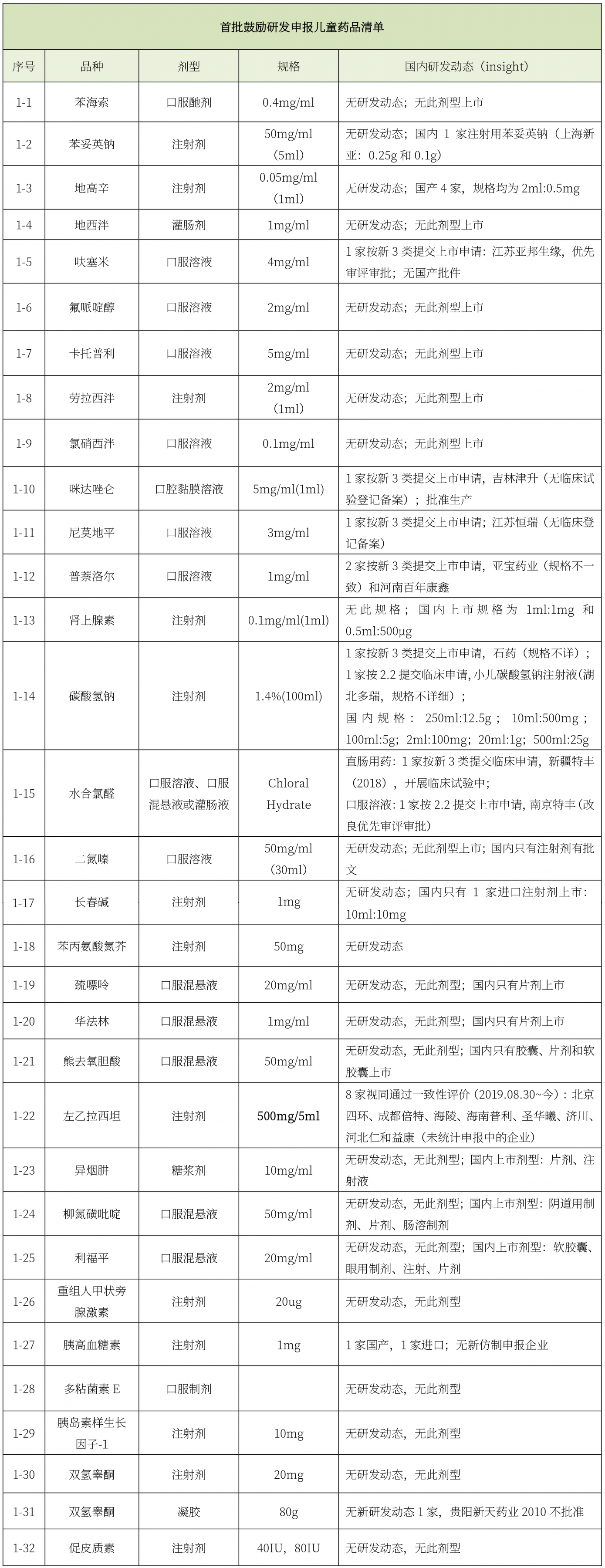 《首批鼓勵研發申報兒童藥品清單》印發。