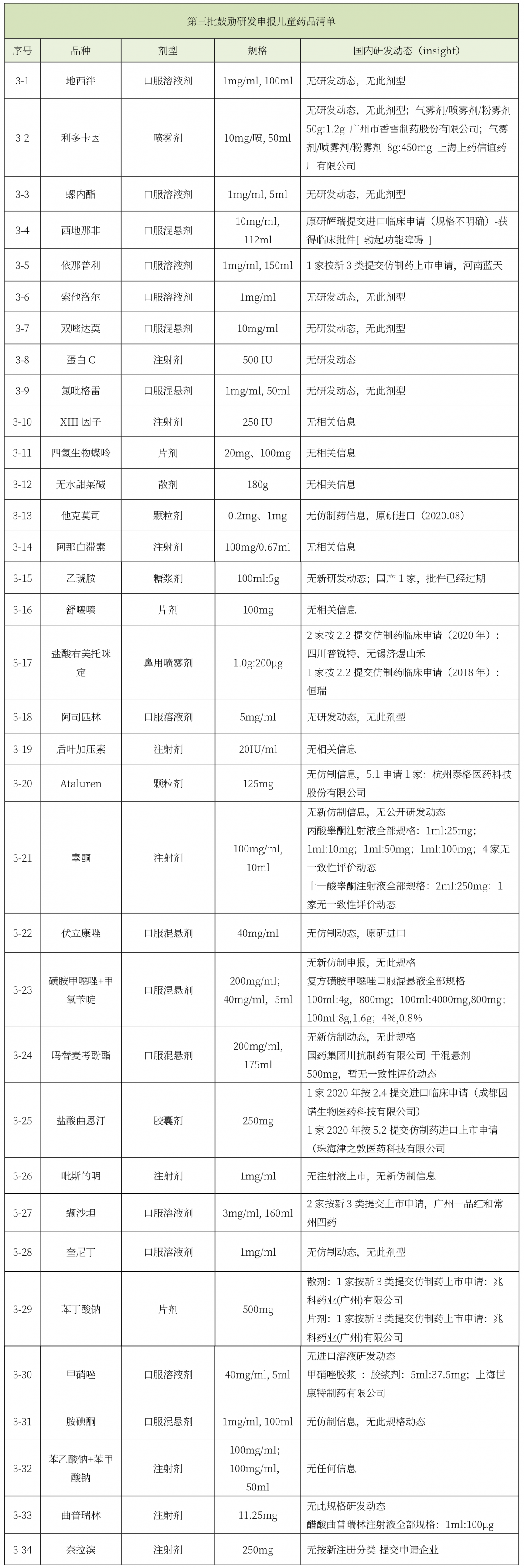 《第三批鼓勵研發申報兒童藥品清單》印發。