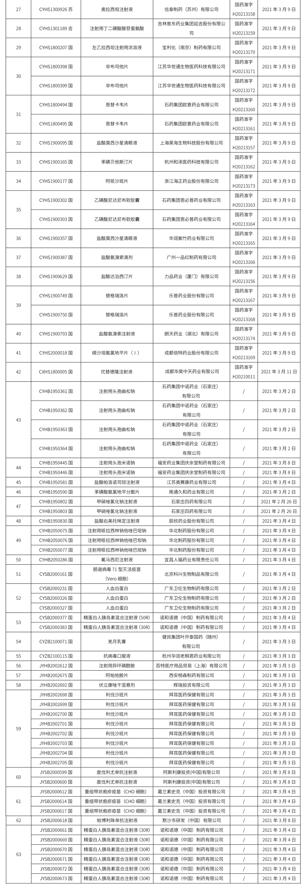 本周共計63個品種獲批取得藥品批準證明文件,其中一致性評價品種14個,注射劑品種35個。