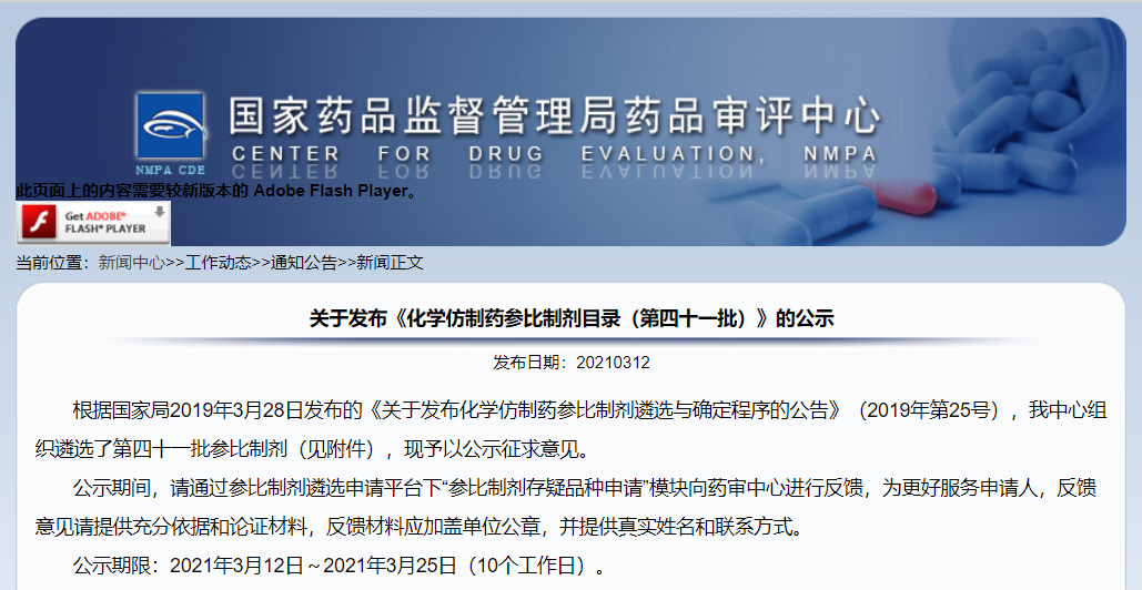 關于發布《化學仿制藥參比制劑目錄(第四十一批)》的公示