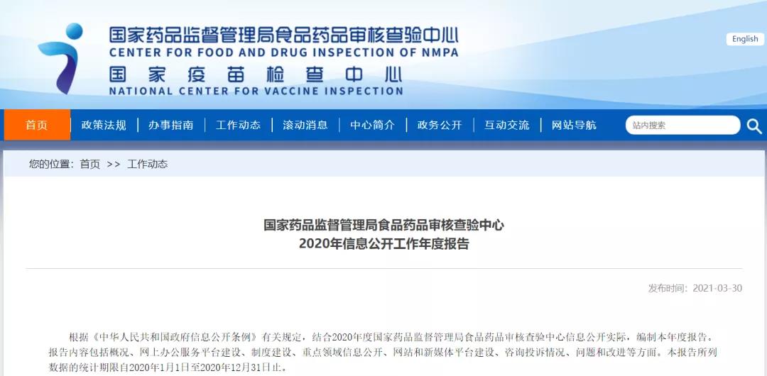 國家藥品監督管理局食品藥品審核查驗中心2020年信息公開工作年度報告(2021-03-30)