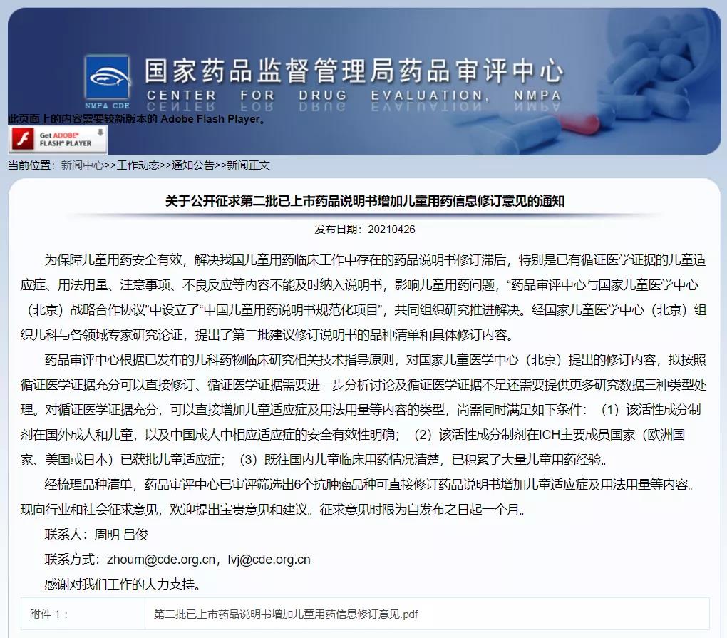 關于公開征求第二批已上市藥品說明書增加兒童用藥信息修訂意見的通知