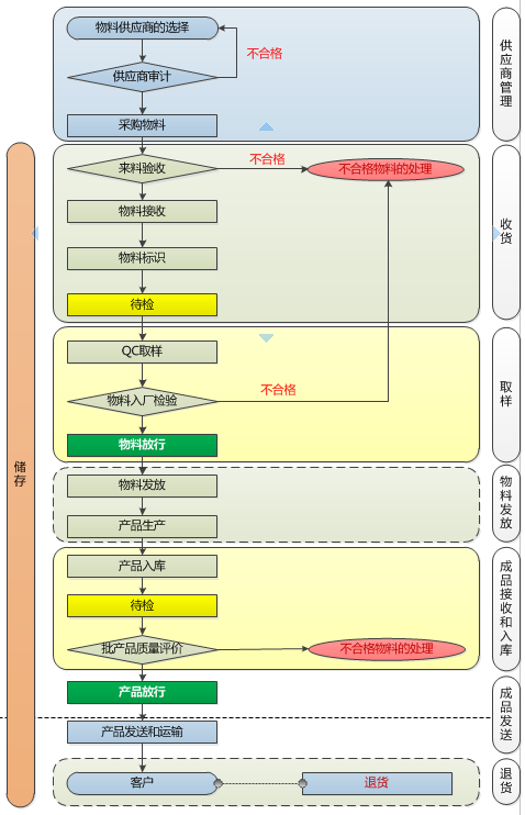 企業應建立書面的管理程序規定:區域狀態標識牌、貨位狀態標識牌的使用、存放和 管理;貨位狀態標簽和物料狀態標簽的接收、發放、使用和銷毀管理并應有記錄。質量管理部門負責建立和實施物料和產品的合格標簽、不合格標簽接收、發放、使 用、銷毀管理流程,并負責決定以下質量狀態的轉換。