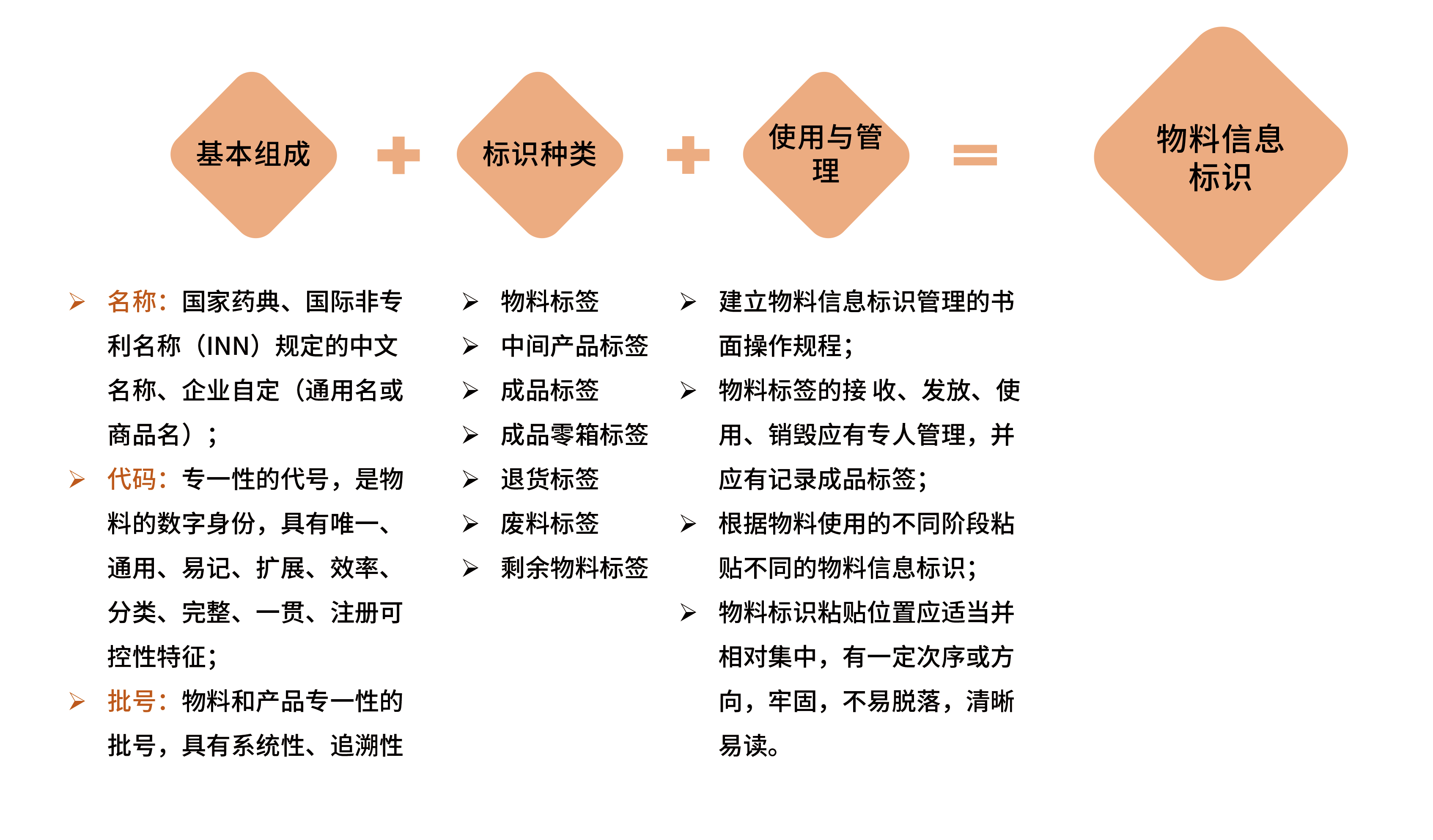 基本要求:使用物料標識的目的在于防止混淆和差錯,從而避免物料和產品的污染和交叉污染。