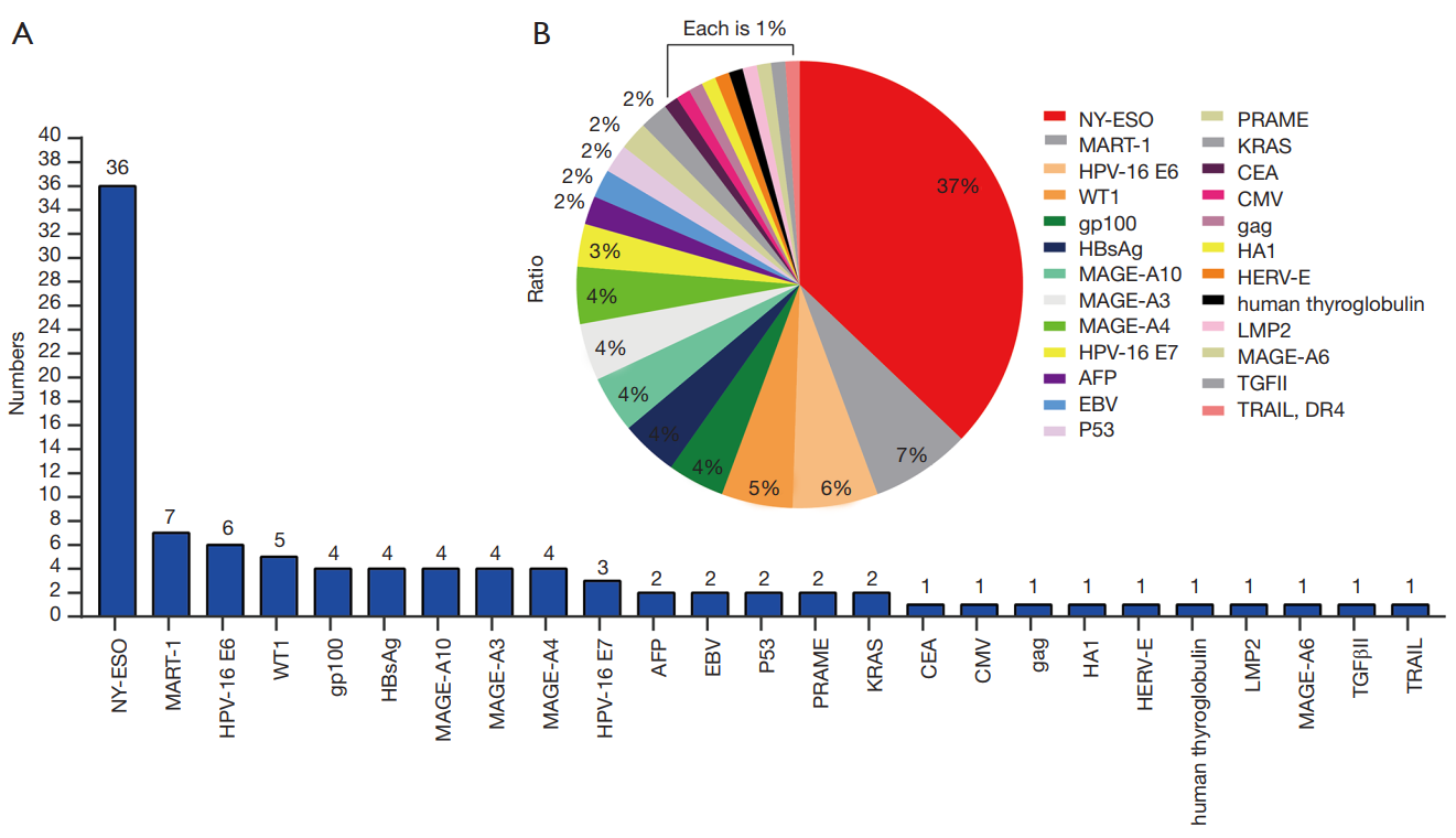 TCR-T細(xì)胞治療的靶向抗原分布情況
