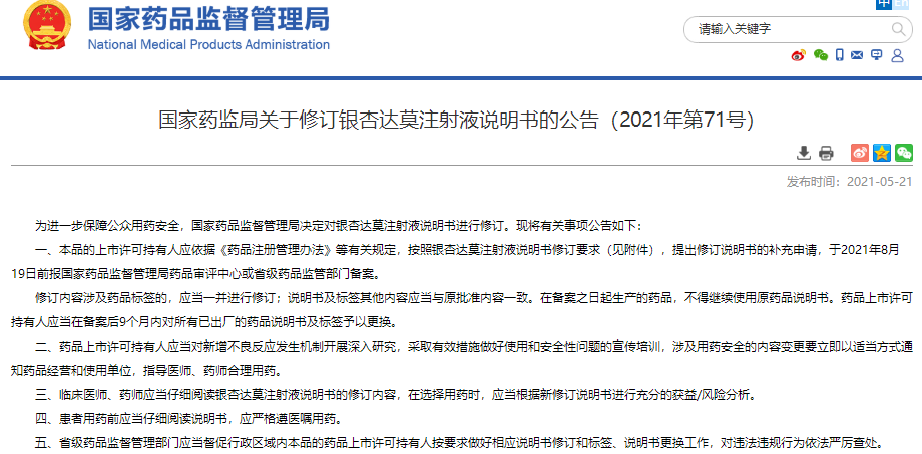 國家藥監(jiān)局關(guān)于修訂銀杏達(dá)莫注射液說明書的公告(2021年第71號)