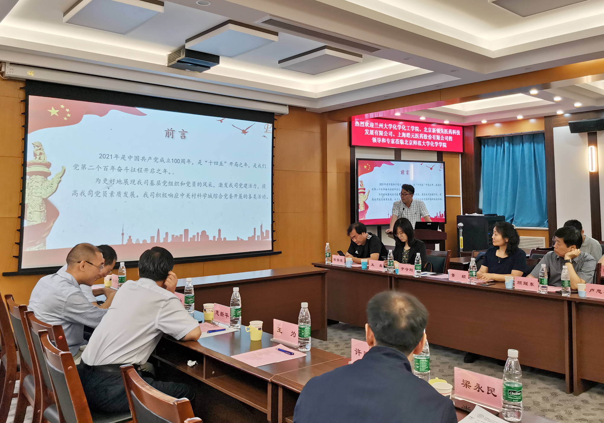 北京師范大學化學學院黨委書記盧忠林教授、院長范樓珍教授,蘭州大學校長助理和科學技術發展研究院執行院長許鵬飛教授、化學化工學院院長梁永民教授、功能有機分子化學國家重點實驗室主任王為教授,北京新領先醫藥董事長陶新華先生、副總裁董穎博士,上海皓元醫藥首席運營官彭立軍博士等眾多專家領導出席了此次黨建活動。
