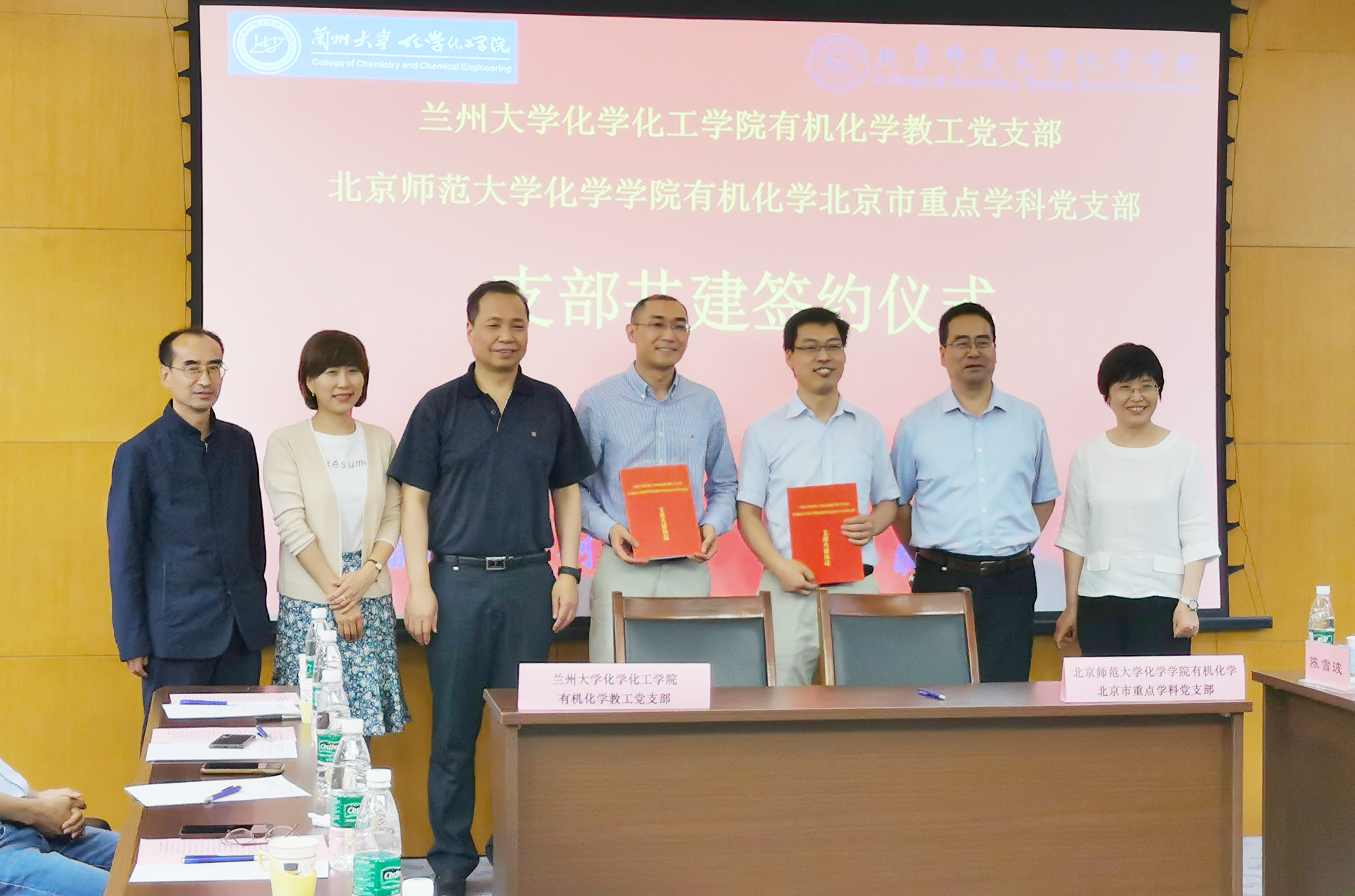 ▲蘭州大學化學化工學院有機化學教工黨支部與北京師范大學化學學院有機化學北京市重點學科黨支部共建簽約儀式成功舉行