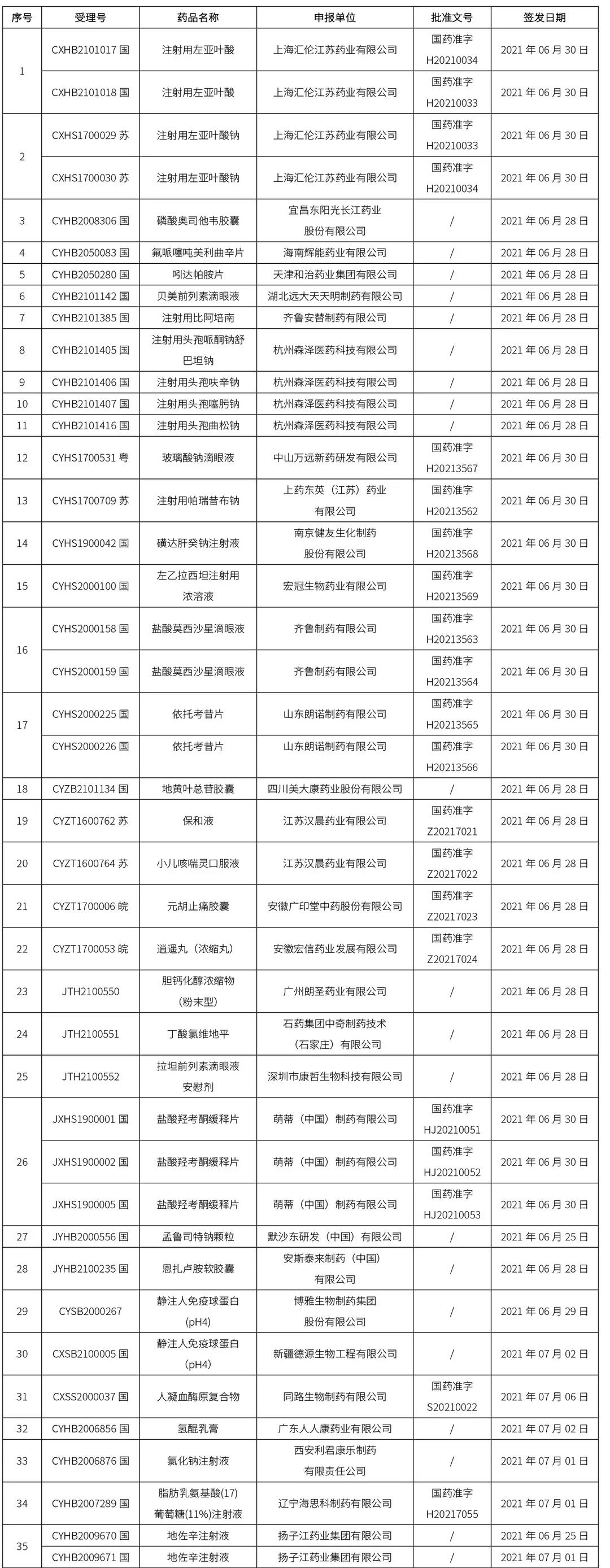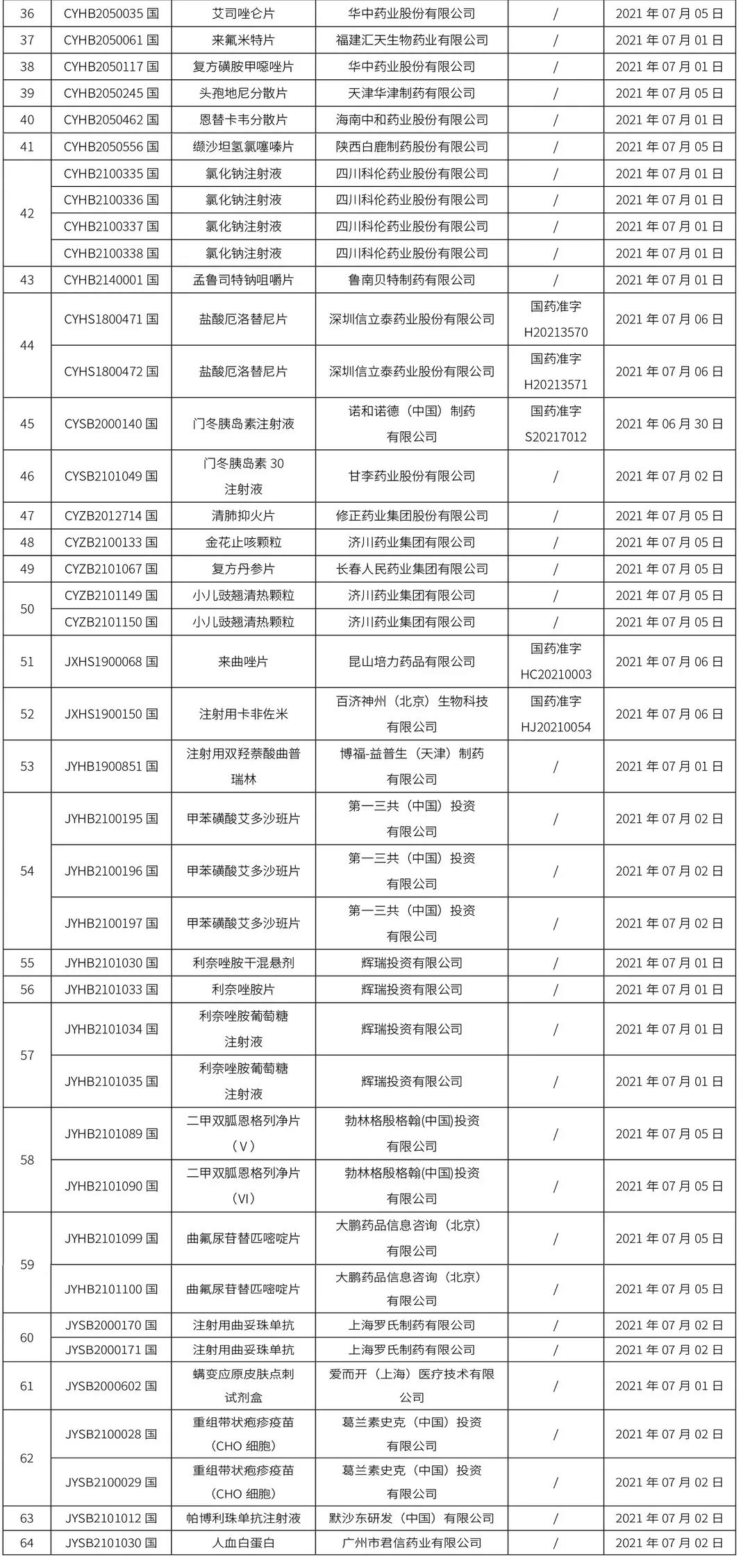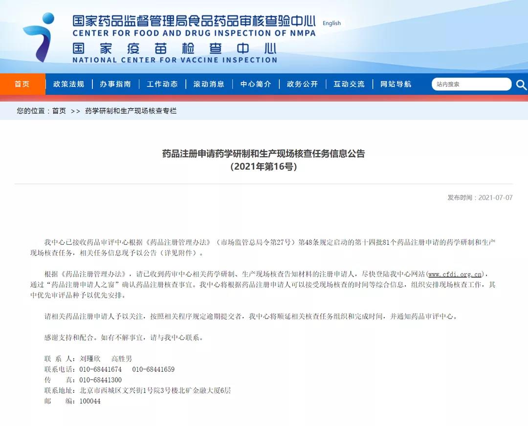 藥品注冊申請藥學研制和生產現場核查任務信息公告(2021年第16號)