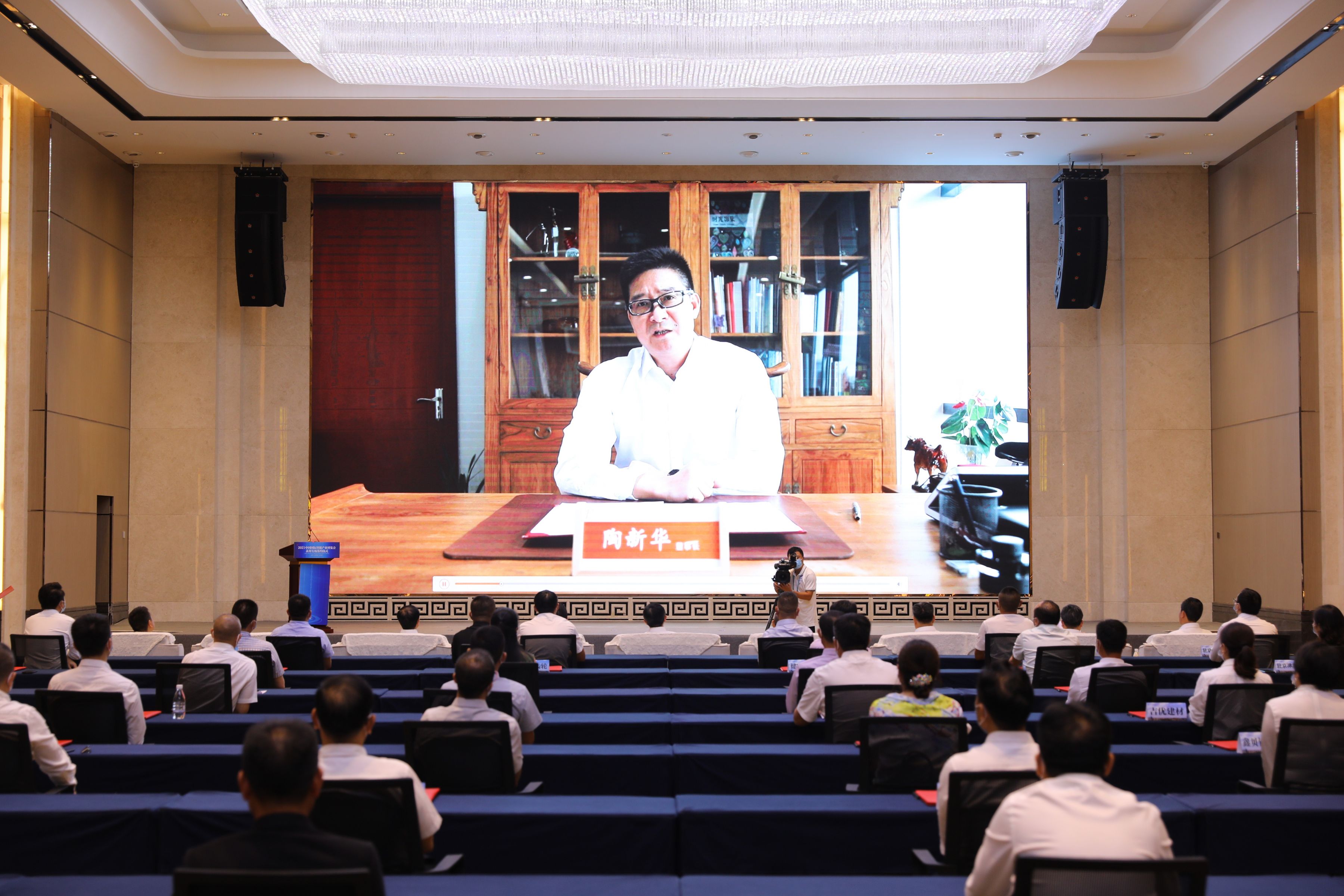 ▲北京新領先陶新華董事長通過線上方式在智博會永川專場簽約儀式上發言