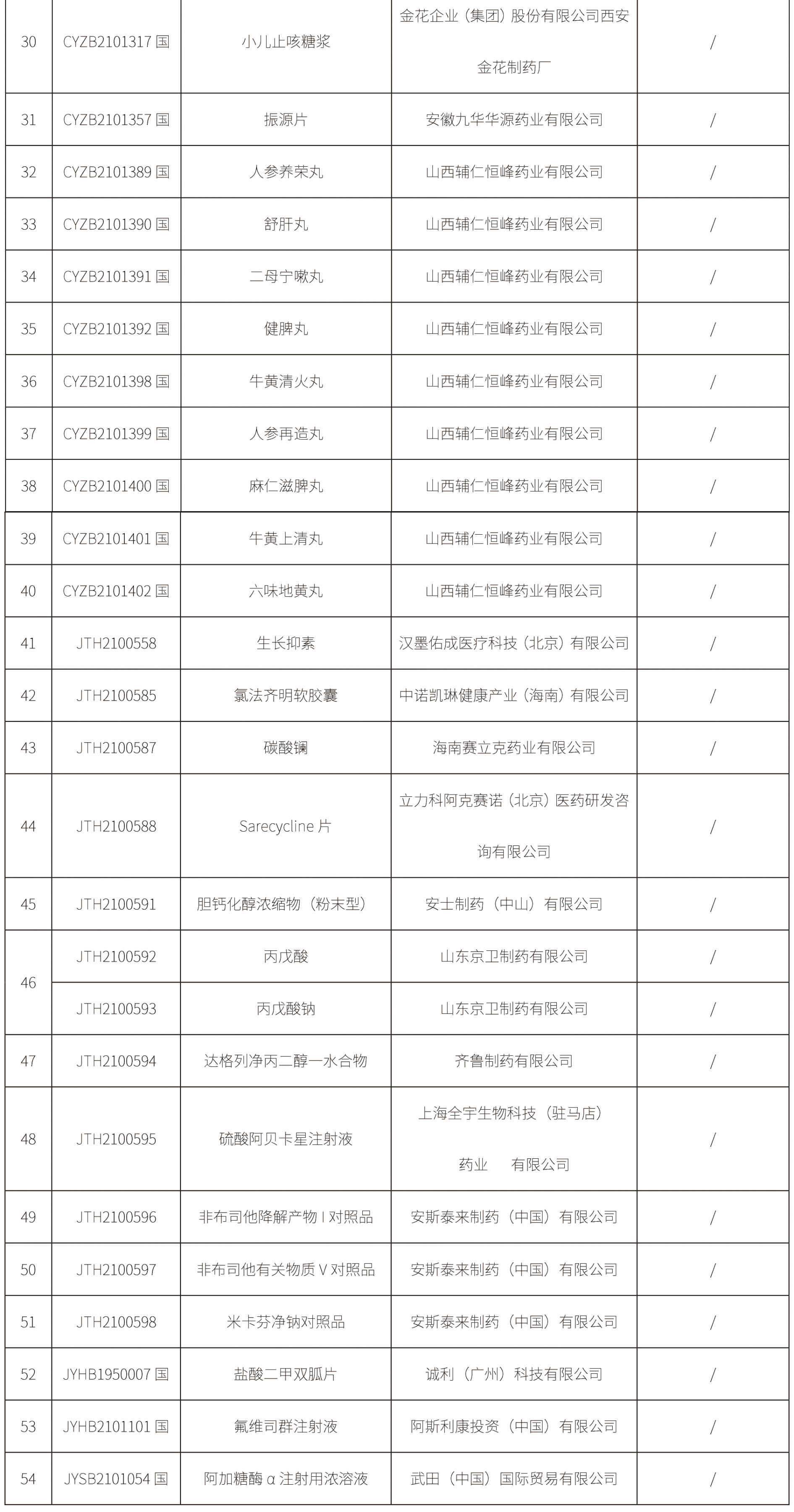 本周共計54個品種取得藥品批準證明文件,其中一致性評價品種14個,注射劑品種14個。52個品種獲得特殊藥品批準證明文件。