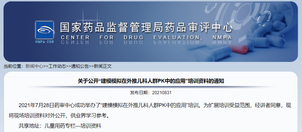 關于公開“建模模擬在外推兒科人群PK中的應用”培訓資料的通知