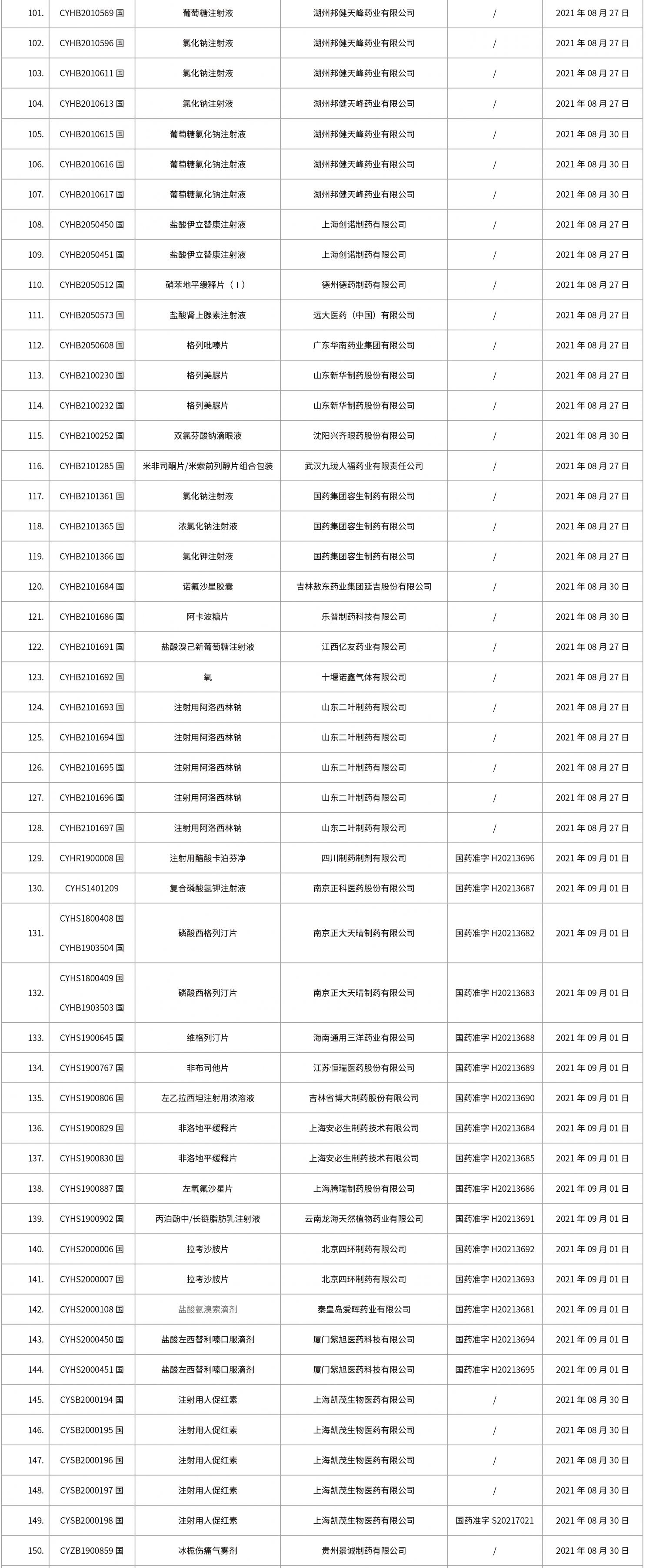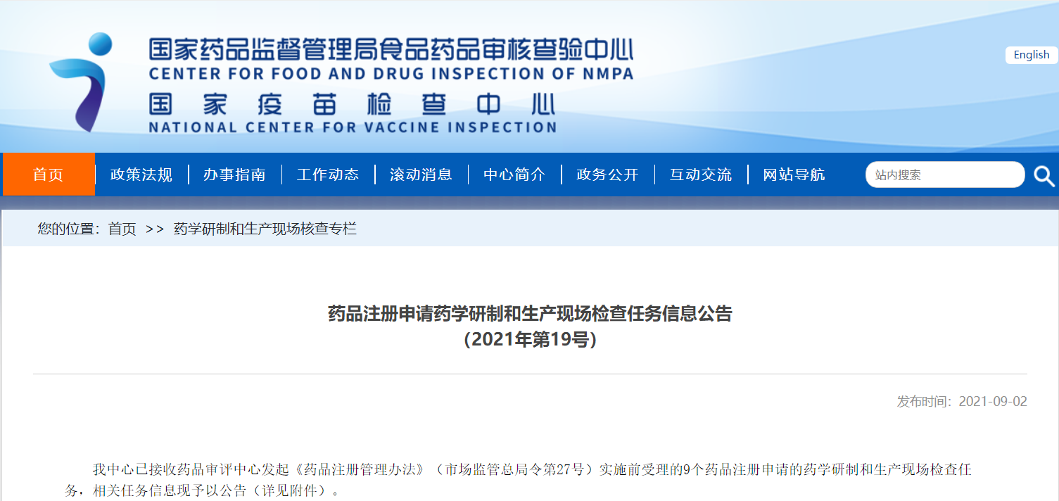 藥品注冊申請藥學研制和生產現場檢查任務信息公告(2021年第19號)