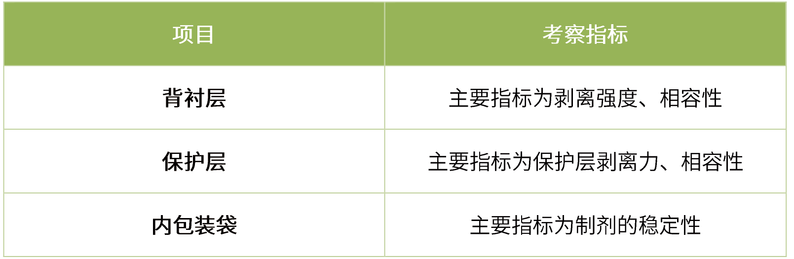 提取物:應在藥物開發過程中進行可提取物的研究,以了解擬定商業化成品中可能存在的可浸出物。這些研究應考察從背襯材料、保護層、印刷油墨、包裝材料等除藥物和黏合劑基質以外的成分中提取出來的化合物。在提取物研究中需說明提取溶劑選擇的合理性,使用的提取溶劑應包括擬定商業化處方中的已知殘留溶劑。