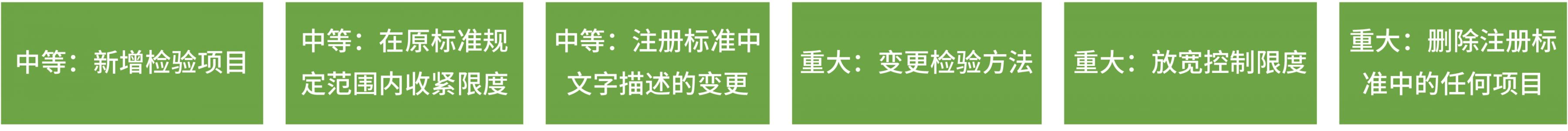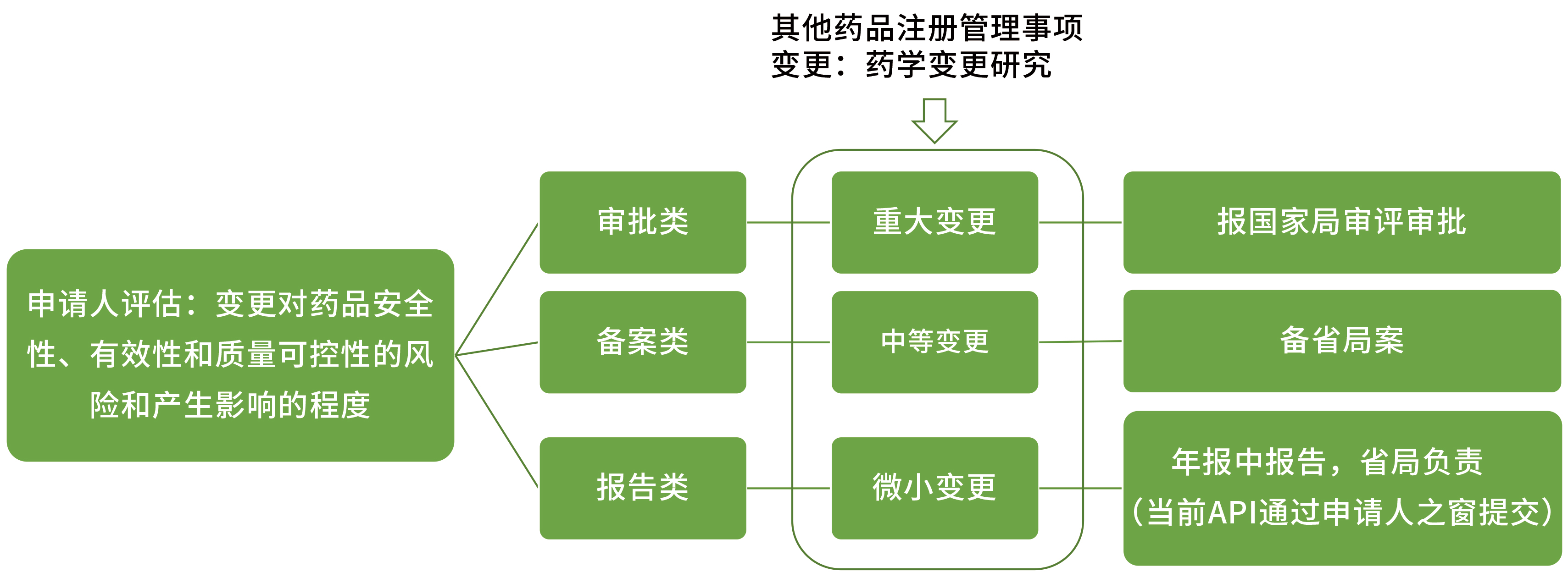 依據變更對藥品安全性、有效性、質量可控性的影響,將藥學變更分為微小變更、中等變更和重大變更,由申請人依據對產品的理解進行評估及相應的研究、申報工作。