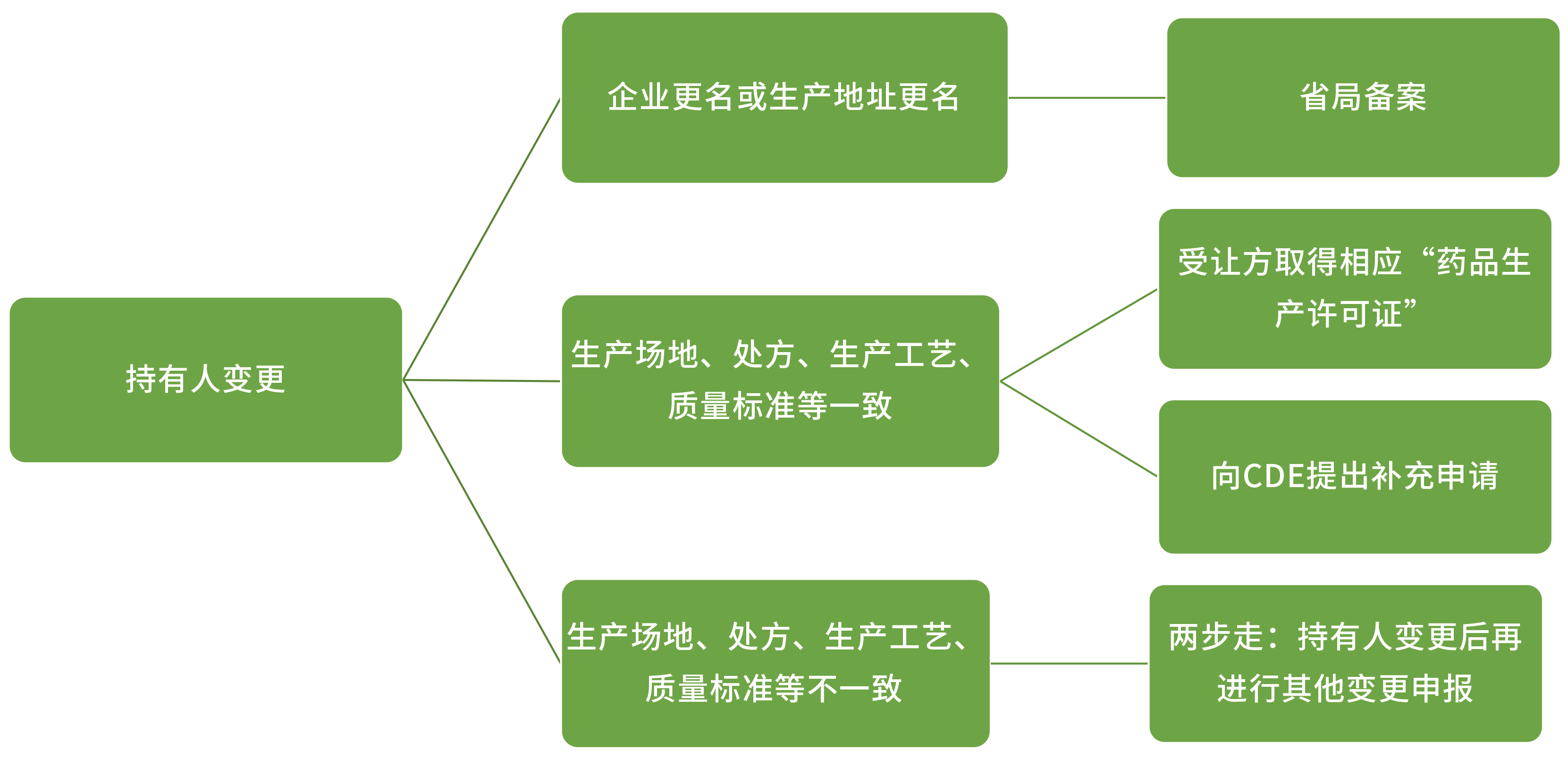 除以上變更外,《藥品上市后變更管理辦法(試行)》及《已上市化學藥品藥學變更研究技術指導原則(試行)》對持有人及生產場地的變更流程及研究內容進行了明確的規定。
