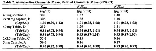 筆者認為FDA綜述對于臨床研究公布的更為詳細,報告中會匯總原研開發過程中所進行的各種臨床試驗,包括不同劑型的藥動學研究;處方變化的生物等效性研究;食物對于藥物吸收的影響;不同人群吸收的影響等,下面以托莫西汀膠囊為例,解讀相關文獻。