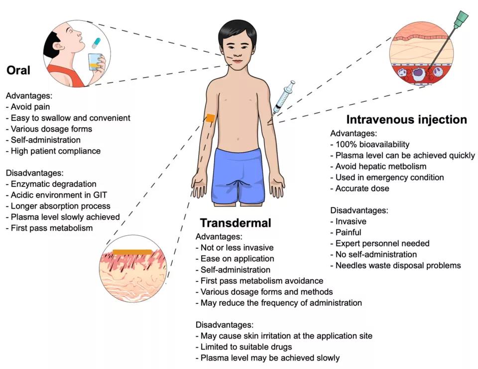 Figure2. 一般制劑不同給藥途徑優(yōu)缺點比較
